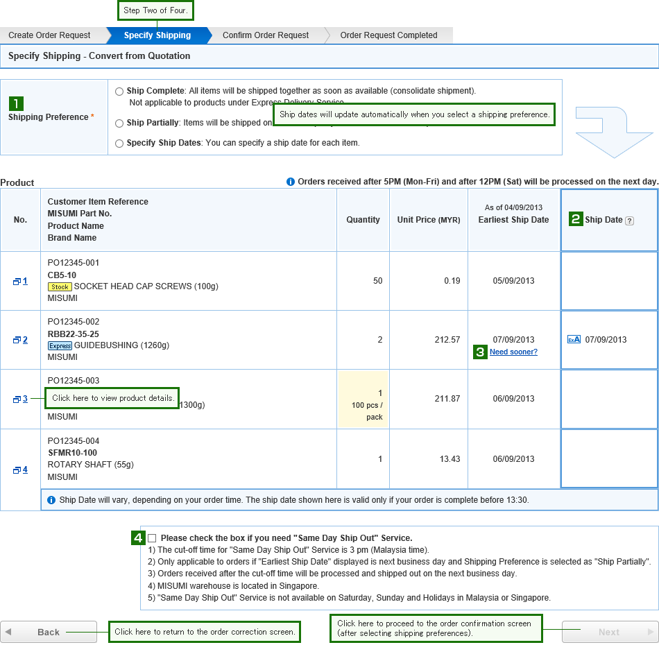 Only applicable to orders if "Earliest Ship Date" displayed is next business day and Shipping Preference is selected as "Ship Partially".