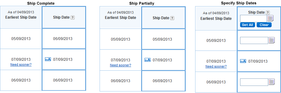 Click "Need Sooner?" if you would like to ship earlier than the currently displayed date.